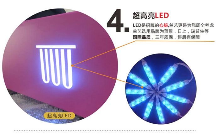 對于黏貼亞克力方式需要確保面板與粘貼到位、平整,保證不漏光、不滲水,然后帶來更高的效果,同時也避免了成本降低。不銹鋼發光字具有亮度高以及高節能環保等特點,同時其維護效果也方便、成本低,具有雅致、厚實、美觀等特點。這種發光字制作價格受到了客戶需求不同而價格不同。